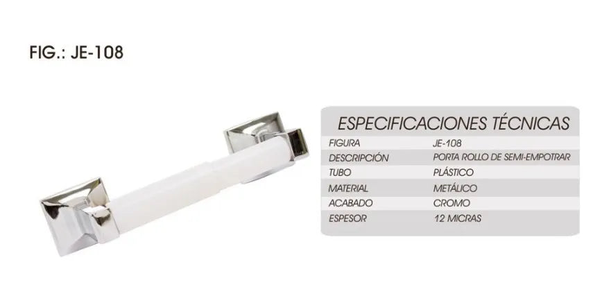 El porta rollo de semiempotrar Crom.Je-108 Rugo es un accesorio de baño elegante y funcional que ofrece un diseño moderno y minimalista. Fabricado en cromo, este porta rollo se integra perfectamente en cualquier estilo de baño, aportando un toque de sofisticación y organización. Su instalación semiempotrada permite un acabado limpio y discreto, manteniendo el rollo de papel higiénico siempre a mano. Además, su construcción resistente garantiza durabilidad y facilidad de limpieza. Con un diseño versátil y de alta calidad, el porta rollo de semiempotrar Crom.Je-108 Rugo es la elección ideal para completar la decoración de cualquier baño contemporáneo.